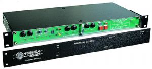 | FORMULA SOUND CX4 MKIII Unit is not restricted to entertainment venues. May be used with any sound system. Ideal for shopping centres, malls & public areas where security announcements are required. FORMULA SOUND CX4 MKIII 4 Channel Noise Limiter with Mic/Line Priority During consultations with Fire Officers, the brief which evolved required that, in order to avoid panic when a fire alarm activates, the programme level in the venue should be reduced and not cut altogether, and that a mic override facility should provide one guaranteed microphone into the system. In the firm belief that regulations will become even tighter the company felt that it was time to develop a unit that would satisfy all these requirements but would also serve other uses. So Formula Sound have developed and produced the Guardian CX4. The unit is not restricted to entertainment venues and may be used with any sound system where a priority override facility is required. It is ideal for use in shopping centres, malls and public areas where security announcements are required. Priority inputs may be at mic or line level. This unit will interface with any existing or new sound installation. It is a four channel device and has two distinct functions. The Guardian has been designed to be connected between the mixer (or pre-amp) of an audio system and the power amplifiers. The unit may be connected to 4 channels of audio, normally 2 stereo pairs. The priority inputs (e.g. DJ microphone) is connected to the priority input socket. This may be at mic or line level (as selected by internal switch). The control input is connected to the fire alarm or whatever triggering method has been decided. When the unit is triggered, the programme level in all four channels will be attenuated and the priority input automatically mixed into all four outputs.